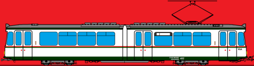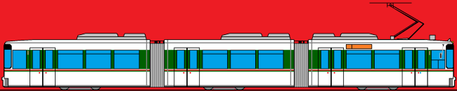 GT6M | ![]() | ![]() Niederflur-Gelenktriebwagen, dreiteilig, sechsachsig, Einsatz Mo-Fr an Schultagen sowie bei Heimspielen des FCA auf der SL6 und bei Messen auf der Messelinie SL9 | ||||||||